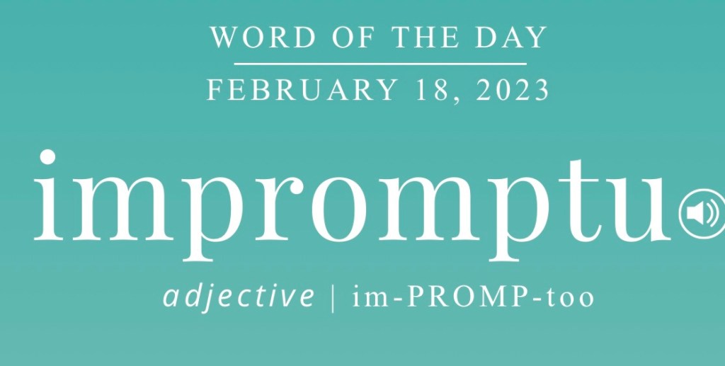 So, impromptu made me think about how uncomfortable I am with extemporaneous speaking. But why? I always like to plan what I’m going to say, even if it’s a 30 second welcome. I am always afraid that if I don’t plan in advance, I’ll forget to mention some vital piece of information. Funny thing is, advance for my neurodivergent brain is not what other people think of as advance. My advance is sometimes 30 minutes before the moment, depending on the occasion. I will say that as I’ve gotten older and more seasoned, I’ve also learned to trust myself and know that whatever comes to mind is what’s meant to be said.